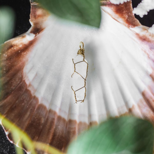 Clear Quartz Polished Pendant Brass